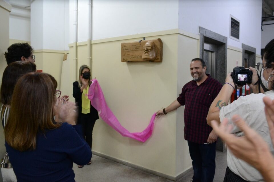 A Adunirio fixou uma escultura na parede visível na entrada do edifício, em frente ao auditório Paulo Freire. A homenagem contou com a participação do professor Amauri Fragoso, diretor do Andes-SN, e da professora Bruna Nascimento, vice-decana do CCH.