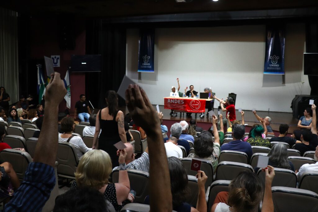 Na Unirio a Assembleia Geral para deliberar sobre os rumos da greve e a análise das propostas do governo federal ocorreu na quinta-feira (20). Após intenso debate, a categoria decidiu pela construção da saída coletiva junto ao Andes-SN e a rejeição das propostas governamentais na mesa de negociação do dia 14 de junho.