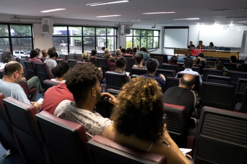 Professores(as) se reuniram em assembleia nesta quinta-feira (12/3) e discutiram respostas aos ataques que a Educação vem sofrendo como os cortes no orçamento, a coerção ao livre pensamento e as intervenções na democracia e autonomia universitária. Os(as) presentes decidiram aderir à paralisação do dia 18 de março – Greve Nacional da Educação – e aprovar o “estado de greve” – significando que os(as) docentes da Unirio sinalizam que estão prontos para deflagrar uma greve caso não haja melhora na atual situação.