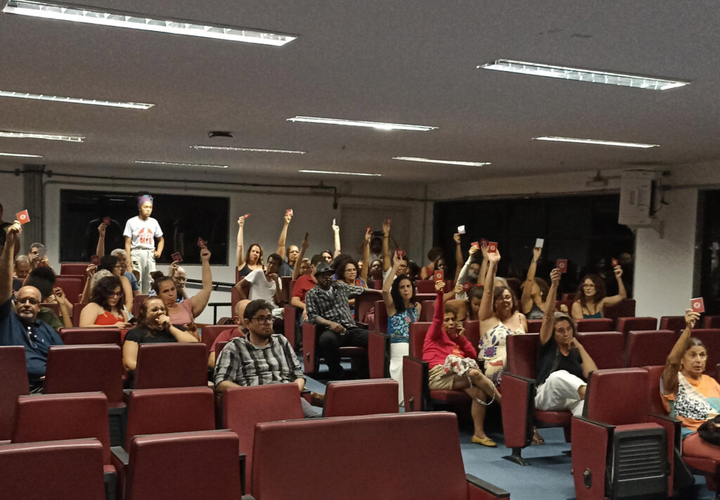 Docentes da Unirio se reuniram hoje (19) em assembleia, no auditório Tércio Pacitti, e aprovaram por maioria o indicativo do Congresso do Andes-SN de “construção de uma greve do Andes-SN e do setor da educação, no primeiro semestre de 2024, tendo como horizonte a construção de uma greve unificada no funcionalismo público federal em 2024”.