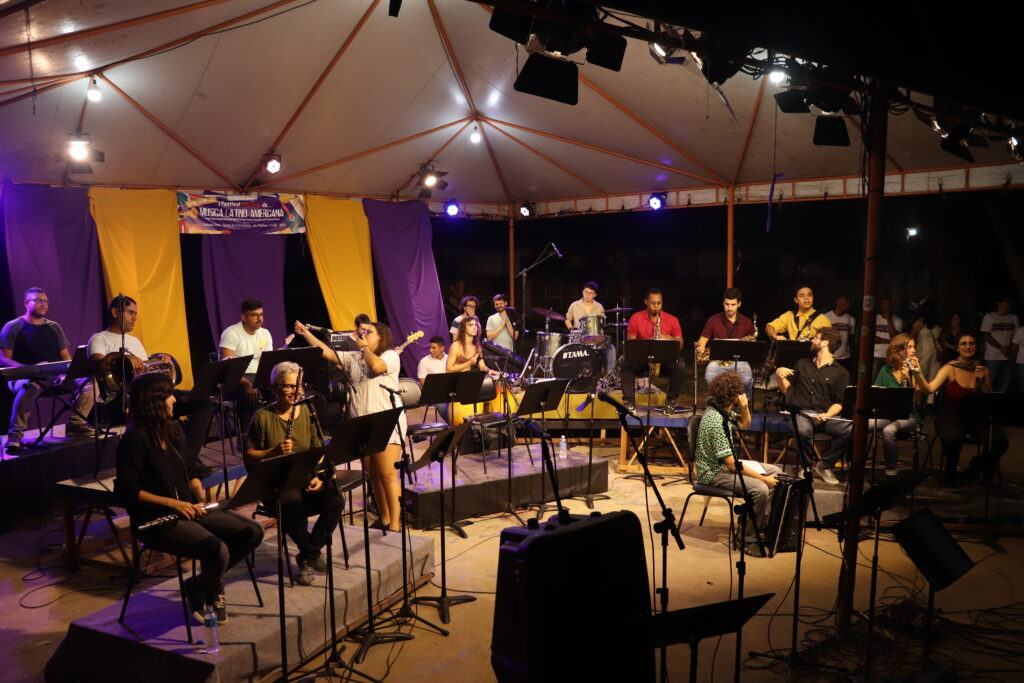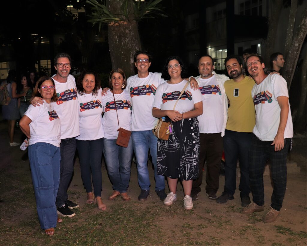 A Unirio foi palco de uma noite emocionante na última sexta-feira, 26, quando foi realizado o I Festival Adunirio de Música Latino-Americana. O evento reuniu docentes, técnicos, estudantes da universidade e muitos visitantes, que vieram apreciar o espetáculo, que celebrou a música e a cultura da América Latina. Os jardins do Centro de Letras e Artes (CLA) vibraram com as apresentações, que contaram com artistas da Unirio e também com grupos convidados formados por componentes de várias nacionalidades.