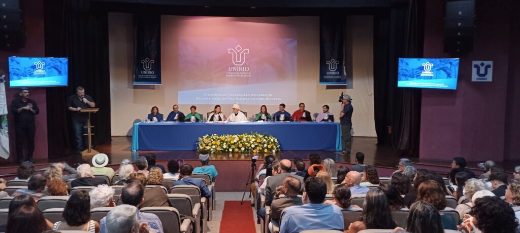 Foi realizada hoje, 18, a cerimônia de transmissão de cargo de reitor e de posse da vice-reitora e de pró-reitores(as) da Unirio no auditório Vera Janacópulos.