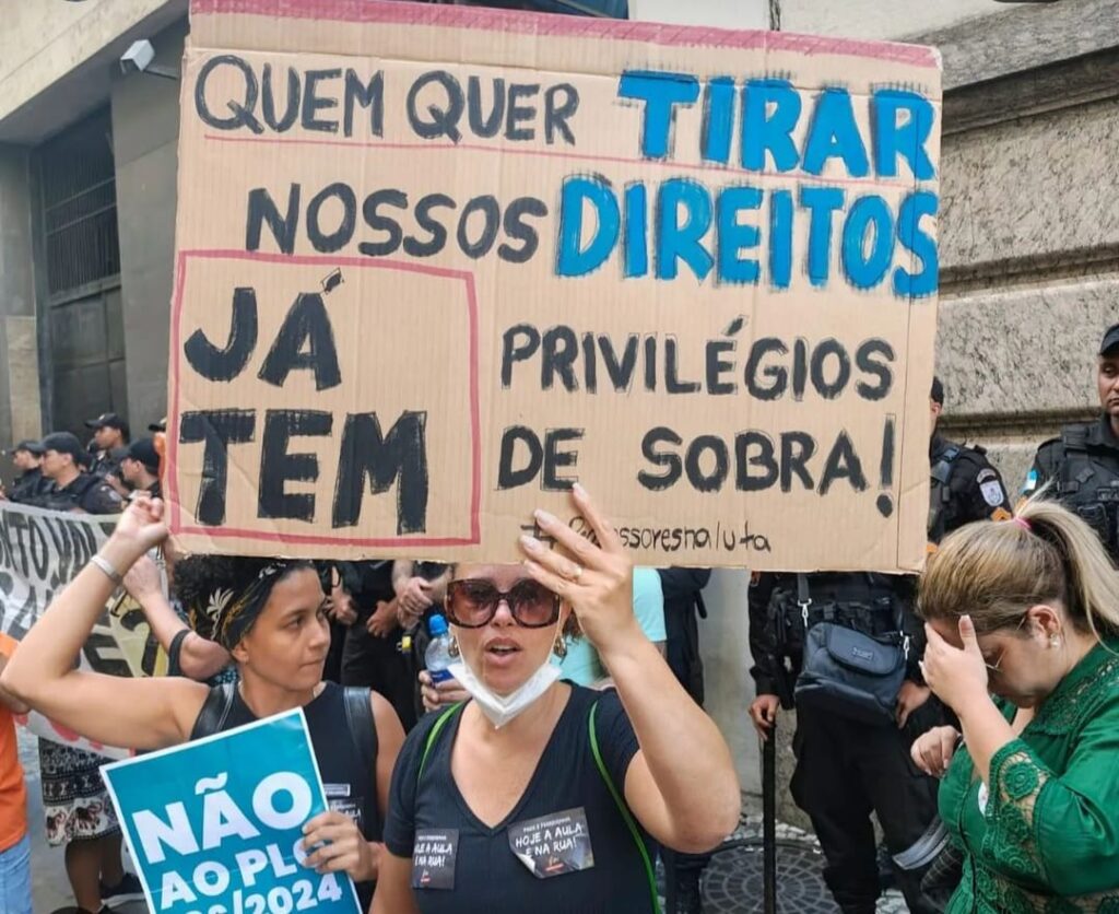 A Adunirio se solidariza com as/os profissionais de educação municipal em greve, que estão em luta contra o pacote de maldade do prefeito Eduardo Paes e que protagonizaram uma importante vitória ontem, 26 de novembro, na Câmara Municipal. Apesar da forte repressão do aparato policial nos últimos dias, docentes e outros profissionais da educação se mantiveram mobilizados e conseguiram barrar na Câmara dos Vereadores a votação do projeto de lei complementar n. 186/24, que retira e ataca direitos dos servidores municipais, como férias e licença especial, e faz com que professoras/es deem mais aulas, perdendo tempo de planejamento.